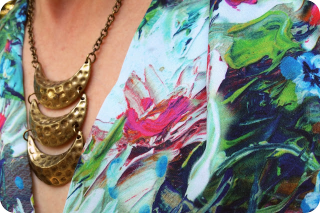 On another note, isn't that fabric sublime? I feel like I am wearing air when I have it on, it is that wispy feeling. The colors are so pretty, too, and the print reminds me of both Van Gogh and some of those 90s babydoll dress prints I used to love when I was a young girl.