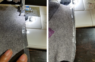 For sweater knits, sewing and finishing a seam at the same time with a serger, might not be the best option. Sweater knits are bulkier and often have more open weaves than regular jersey type knits, so they can stretch and grow in the serger, leaving you with a distorted seam.
