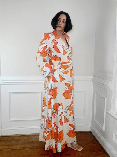 Also, I think viscose is just heavy enough that it's not annoyingly slippery and hard to handle as satin and silks. Needless to say I was taken by this bold vibrant print! If you know some of my previous pieces I've made, bold and vibrant is my jam!
